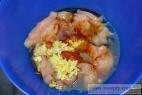 - Mäso nakrájame na rezance a pridáme sójovú omáčku, worcester, zázvor, korenie piatich vôní, prelisovaný cesnak, bielok, med, solamyl a premiešame. Necháme aspoň hodinu marinovať, ideálna doba je okolo troch hodín. Otestovali sme marinovanie 48 hodín s úžasným výsledkom - mäso bolo hotové za polovičnú dobu a veľmi krehké.