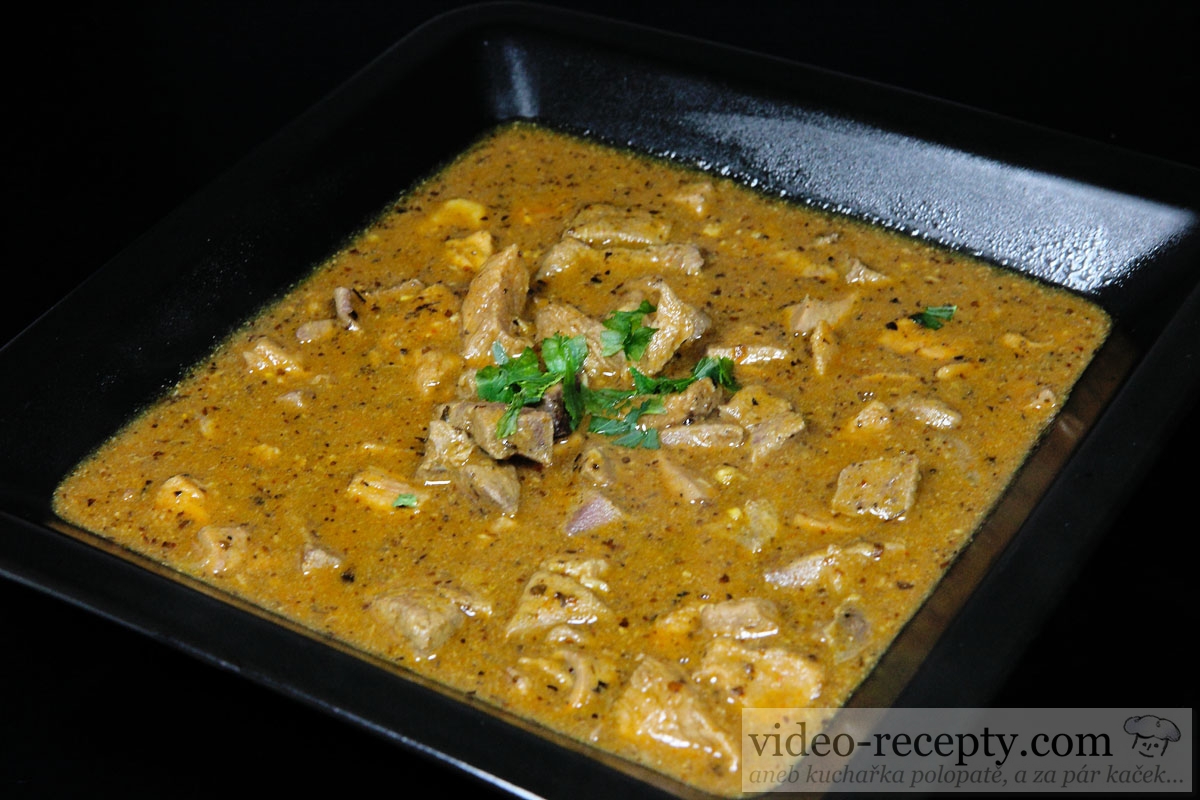 - Na slnečnicovom alebo olivovom oleji pri 120°C zľahka osmažte cibuľu. Potom pridajte papriku, rascu a korenie.