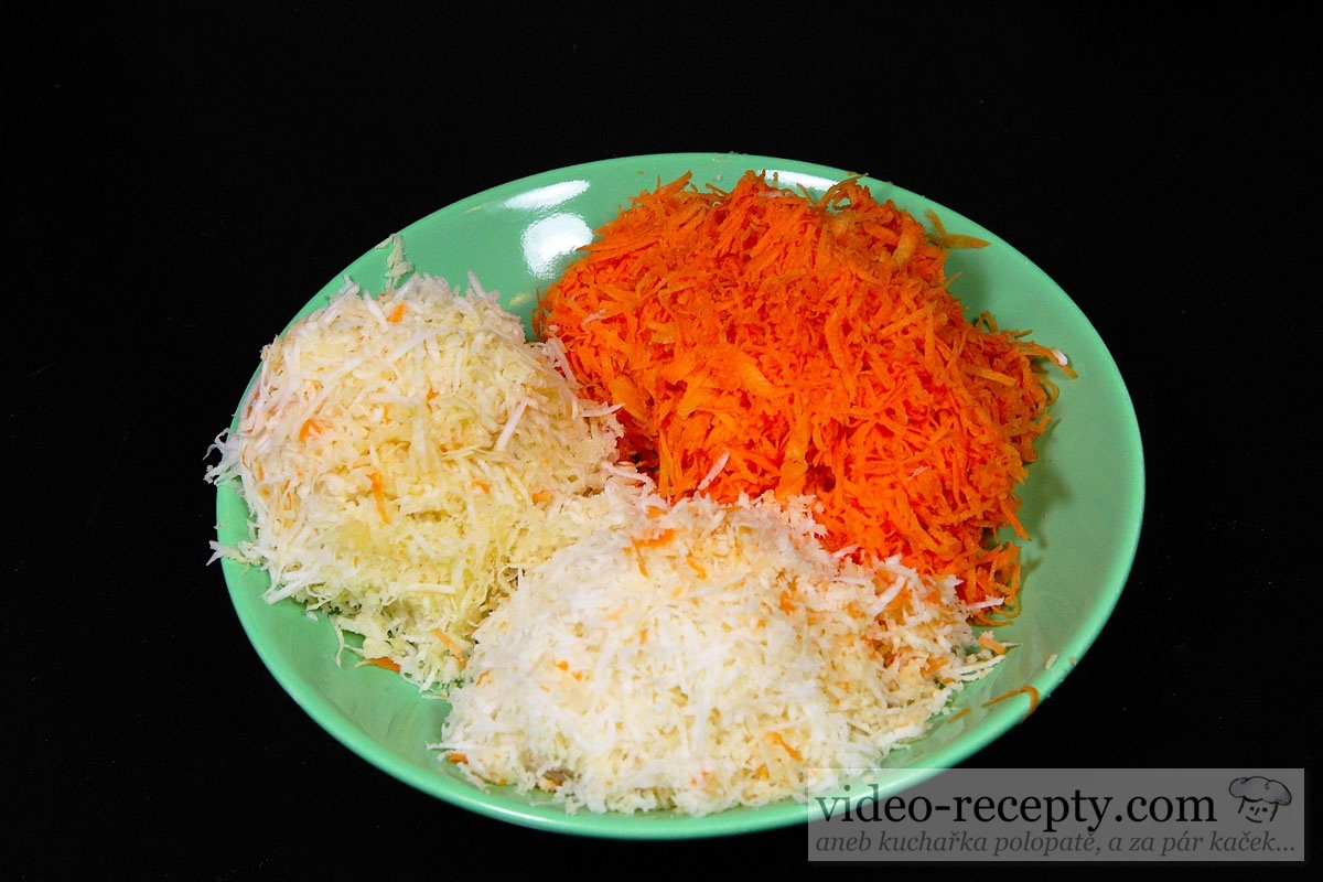- Kráľovskú rybiu polievku z filé s krutónmi začneme olúpaním zeleniny. Cibuľu nakrájame na drobno. Umytú mrkvu, zeler a petržlen nakrájame, alebo lepšie nastrúhame tiež na drobno. Môžeme použiť aj rôzne krájače na zeleninu, výsledkom však musí byť drobné kúsky, ktoré by svojou veľkosťou nemali byť o mnoho hrubšie, než vlasové rezance do polievky. Je to preto, že rybie mäso je v polievke krásne krehké, a hrubé kúsky zeleniny by chuť a výsledný dojem narušovali. Výborne sa tiež hodí malé slzičky na bežnom strúhadle.
